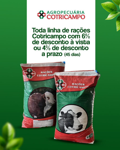 Durante todo o mês, a Cotricampo promove o Mês da Nutrição Animal, com condições especiais em rações, suplementos minerais e linha de medicamentos.ðŸ„