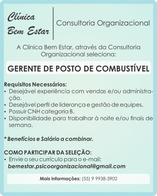 Vagas são para Gerente de Posto de Combustível e Cuidador de Idoso