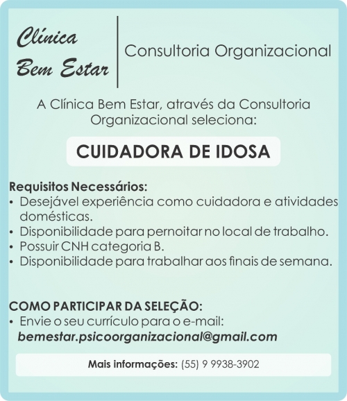 Geral - 08/11/2017 - Clínica Bem Estar seleciona pessoas para trabalhar em Crissiumal