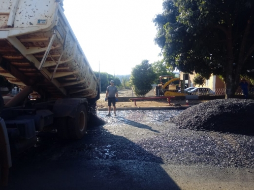 Obras de asfaltamento realizadas pela Secretaria Municipal de Obras exigem a atenção de motoristas e pedestres na saída para Três Passos.