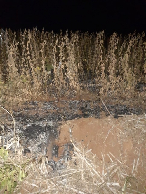 Parte de uma lavoura de soja foi incendiada na localidade de Linha Saudades, com prejuízos ao seu proprietário, que suspeita de incêndio criminoso.