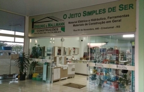 A Loja Breunig e Mallmann Construções, oferece uma linha completa em material elétrico e hidráulico, ferraments e material de construção em geral.
