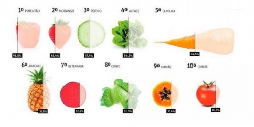 O único alimento que não apresentou nenhuma amostra contaminada foi a batata. Entre os alimentos mais contaminados estão morango, pepino e alface.