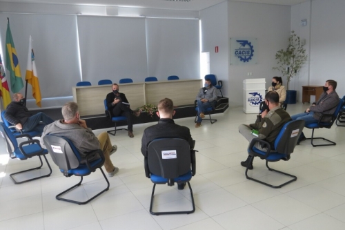 Na manhã de 09 de julho, o presidente da CACIS Aldir Mauro Huber, reuniu-se com o Prefeito Municipal José Carlos Amaral, o Vice-prefeito Jorge Dickel, a procuradora do município Geciana Seffrin, o promotor Dr. Ricardo Souza, o vice-presidente do Sindilojas Adilson Deitos, o presidente do CDL Paulo Bohn, o Delegado da Polícia Civil Marion Volino, e o representante da Brigada Militar Tenente Ebio Alencar da Silva Bastos, com o objetivo de debater a entrada do município e região, nas regras de distanciamento impostas pela Bandeira Vermelha, e sobres ações a serem tomadas nos próximos dias, para voltar as regras da Bandeira Laranja.