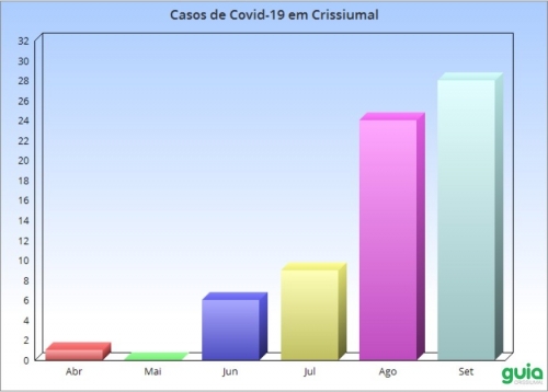 Foram por mês: 01 caso em abril, 06 em junho, 09 em julho, 24 em agosto e 28 em setembro, que agora já é o mês com o maior número de casos, mesmo com apenas nove dias.