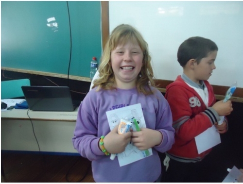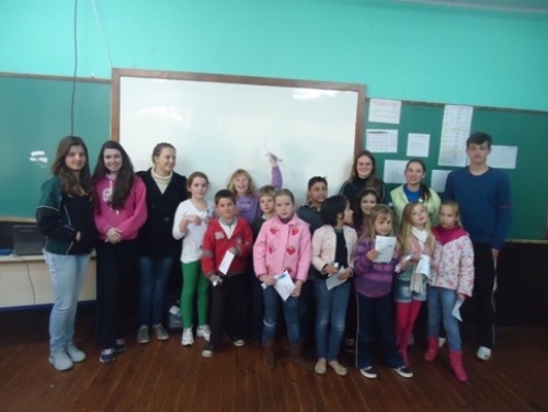 Na ocasião foi trabalhada a importância da higiene bucal através de um vídeo educativo chamado “A lenda do reino do dente” e explicações sobre como proceder com a escovação. Em seguida foram distribuídos kits de escovação contendo pasta de dente, escova e fio dental, os quais em parte foram doados pela Secretaria da Saúde e em parceria com os alunos dos 3º anos da escola através de atividade desenvolvida pela Gincana da Unijuí, que possibilitou angariar recursos para aquisição dos materiais.
