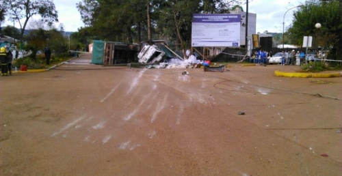 A cidade argentina de El Soberbio, vizinha de Crissiumal através da fronteira com o Rio Uruguai, registrou na manhã terça-feira, dia 10 de junho, o tombamento de um caminhão carregado em pleno centro.
