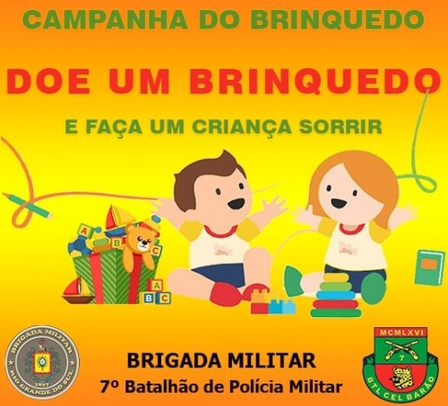 Os brinquedos, que podem ser usados, desde que em bom estado, ou novos poderão ser doados nos pontos de coletas em todos os quartéis da Brigada Militar da Região Celeiro.