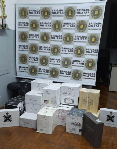 Na noite desta quarta-feira, 09, uma guarnição da Brigada Militar de Horizontina abordou um veículo Versailles, placas de Três de Maio, em atitude suspeita e localizou dentro do veículo 190 garrafas de vinhos de origem estrangeira, que estavam sendo transportados, sem nota fiscal de importação no automóvel que era conduzido por um homem.