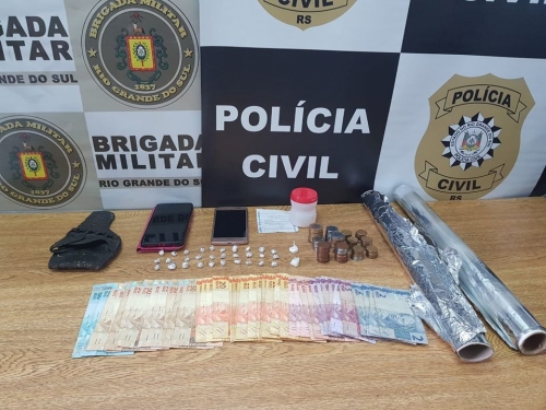 Na ação foram apreendidas 30 pedras de crack, 02 buchas de cocaína, material para embalar a droga, 02 aparelhos celulares e R$ 1.106,60 reais.