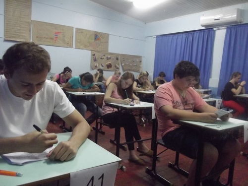 A escola Rocha Pombo realizou no último dia 09 de outubro, o Simulado do ENEM, em sua 3ª edição, coordenado pela professora Roseli da Rosa Vianna, e destinado aos alunos do ensino médio, com ênfasenas exigências dos vestibulares e do Enem Nacional, entre eles a organização rígida e minuciosa, a inscrição formal, a identificação rigorosa, a inflexibilidade dos horários, a postura em sala, e questões com o mesmo nível de dificuldade.