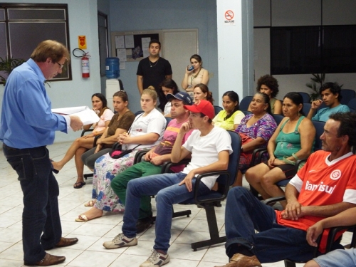 Durante o encontro, os moradores receberam uma cópia da Lei de Doação, que é a de n.º 3200/2014, que foi aprovada pelos Vereadores na última segunda-feira e sancionada pelo Prefeito nesta semana. O Projeto foi de origem do Executivo. O Prefeito Walter Luiz Heck pessoalmente explicou aos recebedores da doação alguns artigos da Lei, sendo que definição dos beneficiados com a doação dos lotes ocorreu após realização de processo que envolveu os técnicos da Secretaria Municipal de Desenvolvimento e Assistência Social do município, que realizaram visitas domiciliares, observações, escutas sensíveis, entrevistas coletivas e individuais com as famílias que encontram-se em situação de vulnerabilidade e risco social, no que se refere à habitação, segundo a Lei, que ainda diz que em caso de o beneficiário efetuar a venda, aluguel, troca ou cedência a terceiros dos imóveis doados num período inferior a 10 (dez) anos, a doação será anulada e o terreno voltará a ser propriedade do Município. Sobre os lotes doados será construída uma casa de alvenaria, cuja Planta Padrão será fornecida pela Prefeitura Municipal.