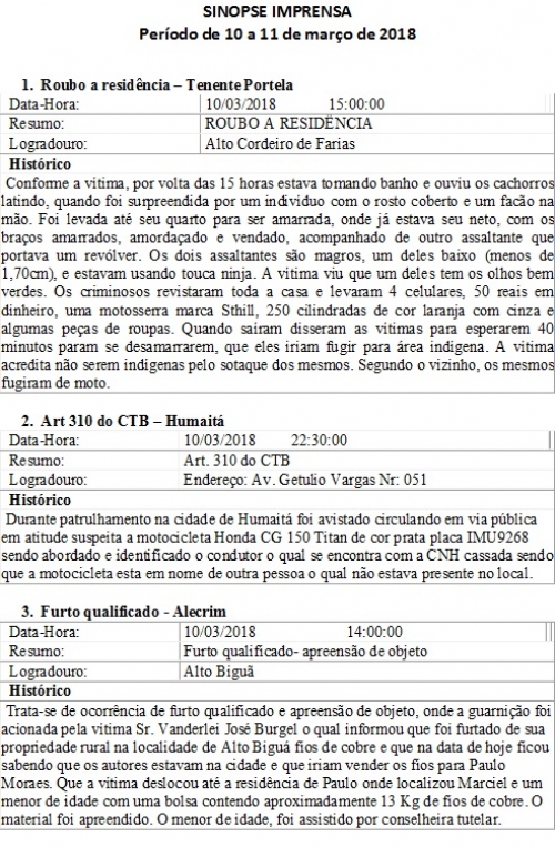 PolÃcia - 11/03/2018 - Ocorrências policiais das últimas horas na região