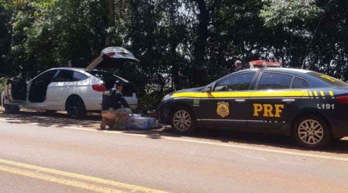 Os policiais realizavam abordagens na BR 468 quando abordaram uma BMW 320I com placas de Cascavel/PR. O condutor, também paranaense, demonstrou nervosismo excessivo durante a abordagem.