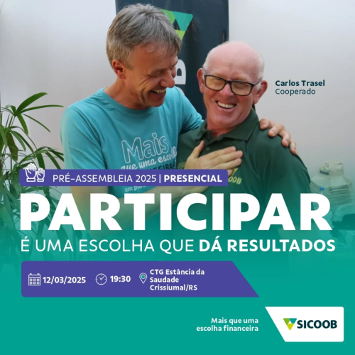 Acontece na noite dessa quarta-feira (12/03) no CTG Estância da Saudade, a assembleia do Sicoob Creditapiranga em Crissiumal.