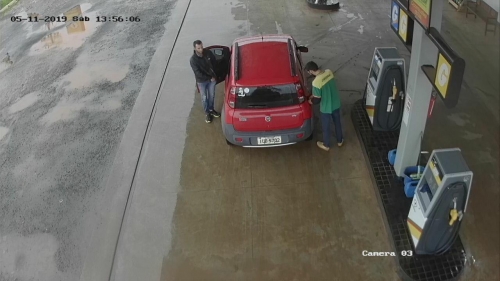 Câmeras de segurança de um posto de combustível já possuem imagens do veiculo em que o condutor abasteceu o veiculo e assim já poderá ser identificado o autor do furto.