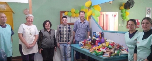 Todos os produtos arrecadados, alimentos e material de limpeza foram DOADOS ao Lar do Idoso de Crissiumal, na presença de Marcos Sonda e Antonio Augusto Thomé (Guto) além da presidenteSra. Marlene Volpatto e demais Servidores da Entidade.
