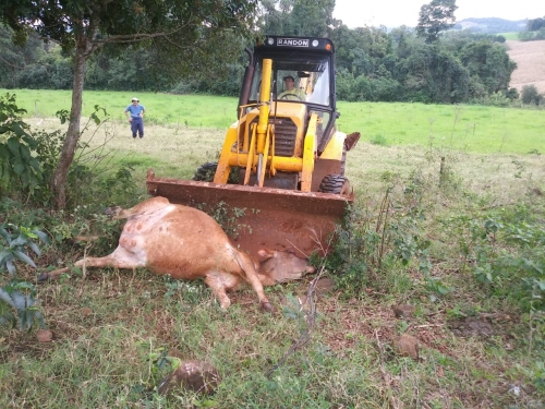 A mesma pertencia ao produtor de leite Adelino Becher. Ele estima um prejuízo de cerca de R$ 2.500,00 com a morte do animal, que teve que ser enterrado por uma retroescavadeira da Secretaria Municipal de Obras na manhã deste domingo.