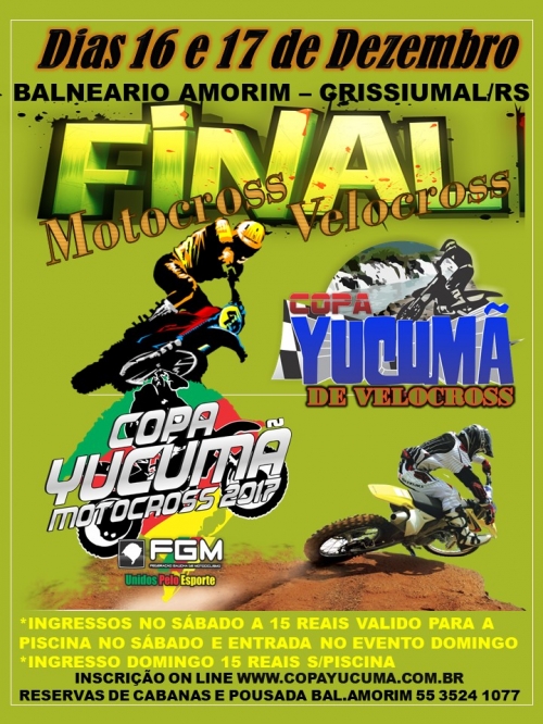 As provas finais da temporada do Velocross e Motocross 2017 da Copa Yucumã de motociclismo acontecerão em Crissiumal, nos dias 16 e 17 de dezembro, na pista do Parque Balneário Amorim.