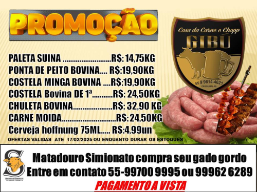 Comercial - 13/02/2025 - Ofertas na Casa de Carnes e Chopp Gibú