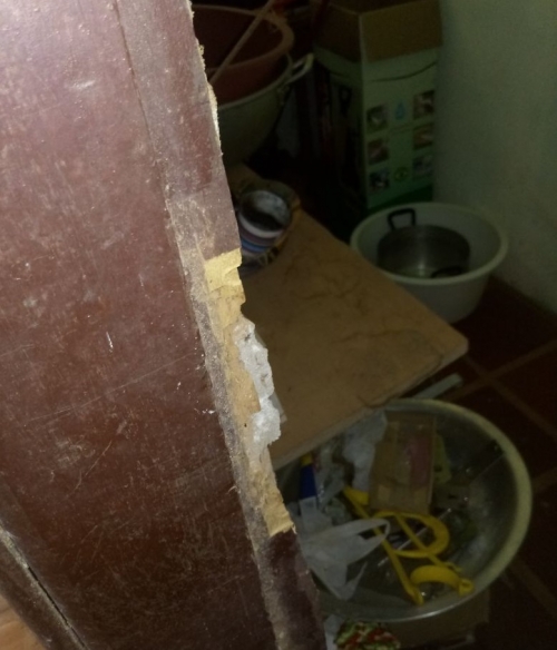 As portas da antiga cozinha e depósito foram arrombadas com utilização de força.