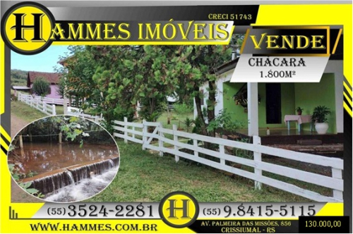 VENDE: Lote Rural: Chácara com 1.800m² com Casa Alvenaria e Cabana no interior de Crissiumal – RS, R$ 130.000,00