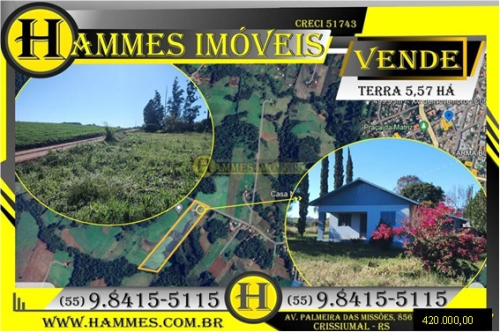 VENDE: LOTE RURAL – Chácara com 4,57 hectares na Linha Cotricampo, 1,5 km da cidade de Crissiumal – RS, R$ 420.000,00
