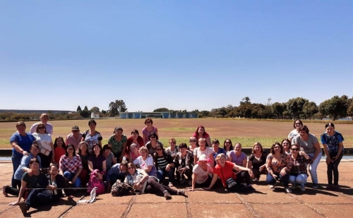 Foto acima mulheres crissiumalenses que estão participando da Marcha das Margaridas. (Marlene, Claudete, Lenir e Leila)