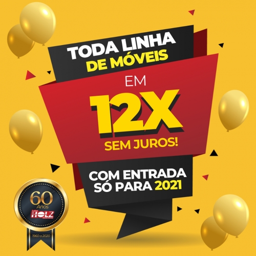 Móveis em 12X SEM JUROS, com pagamento só para 2021 é só nas Lojas Holz!