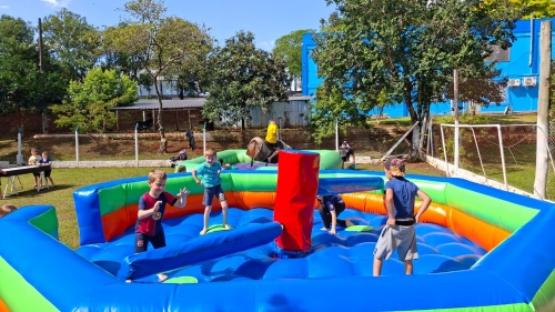 O primeiro dia foi de muita diversão, com brinquedos infláveis, água e muitas brincadeiras.