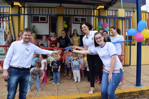 A Escola Municipal de Educação Infantil Neli Ilse Thomé de Crissiumal realizou na manhã dessa quarta-feira (13) a apresentação da obra realizada com recursos do Fundo Social Sicredi 2019.