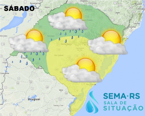 No sábado o sol aparece na maior parte do RS. Já na fronteira oeste a instabilidade pode provocar pancadas de chuva.