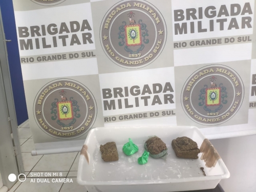 Ao verificar foi constatado e apreendido um invólucro contendo maconha pesando 387,28 gramas e outras duas embalagem contendo cocaína pesando 49,94 gramas.