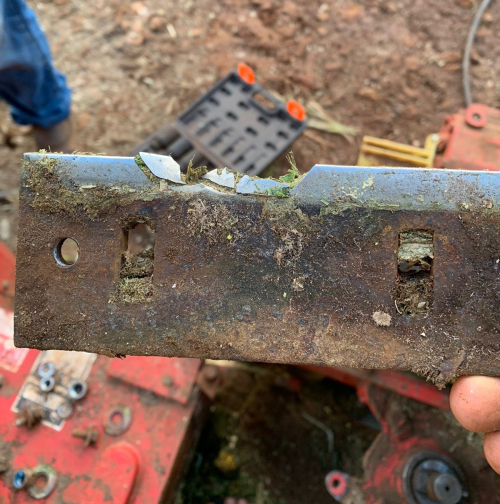 Mauri Egewarh contou ao Guia Crissiumal que na tarde dessa terça-feira (13) percebeu o barulho quando estava no corte do milho, mas que não chegou a parar a máquina, que foi desmontada nessa quarta-feira onde foram percebidos os prejuízos, com facas e contra-facas quebradas.