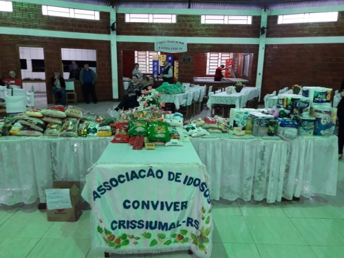 A Associação de Idosos Conviver de Crissiumal realizou neste domingo (14) a entrega de alimentos não perecíveis e produtos de limpeza ao Hospital de Caridade de Crissiumal.