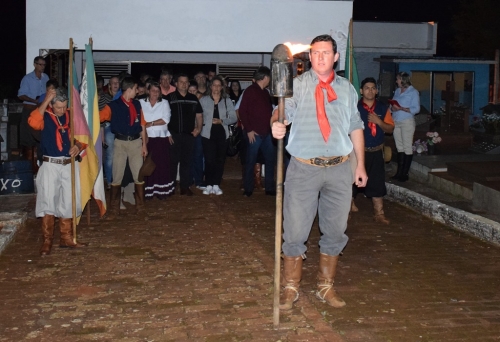 Como já é uma tradição de muitos anos, uma centelha da Chama Crioula foi levada pelos “cavalarianos” do CTG Estância da Saudade, em cavalgada, até o Cemitério Municipal, onde foi acesa no túmulo do homenageado.