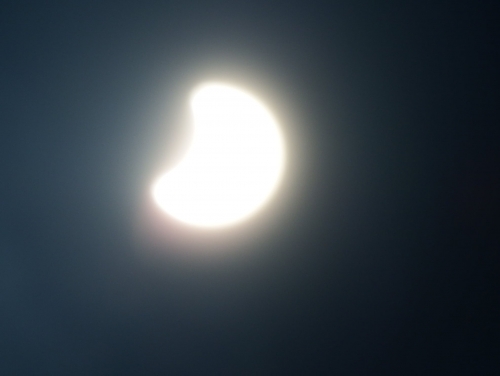 Em Crissiumal o fenômeno pôde ser visto com dificuldade, uma vez que muitas nuvens se concentravam sobre a região. Mas para brindar a região, junto com o eclipse, um belo halo solar se apresentou, algo bastante raro.