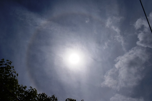 O halo é um fenômeno onde uma espécie de arco-íris se forma ao redor do sol. Isso acontece graças à refração da luz solar em cristais de gelo presentes em nuvens mais elevadas. Ele é um fenômeno natural, também denominado fotometeoro, decorrente da decomposição da luz solar pelos cristais de gelo que se formam em nuvens localizadas entre cinco e dez quilômetros de altura, as formações de nuvens que normalmente provocam o halo solar são as nuvens cirrus e cirrus-stratus. Estas nuvens são pouco espessas e permitem a passagem da luz e que o sol seja visto.