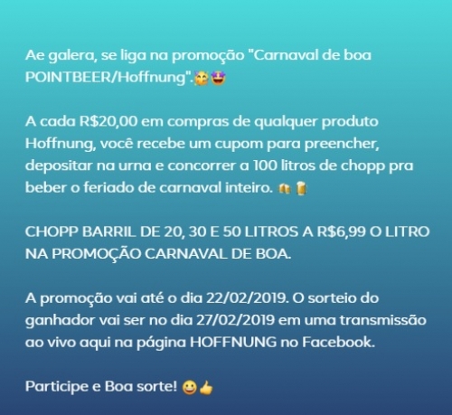 Comercial - 15/02/2019 - PointBeer e Chopp Hoffnung com promoção especial para o Carnaval