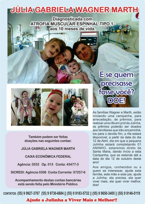 Aos amigos, conhecidos ou a quem se interessar, ajude esta família, esta mãe e este pai, ajude a Julinha, ela precisa, ela quer viver mais, ela quer viver melhor, doe!