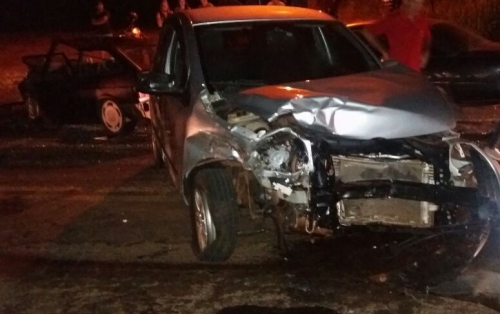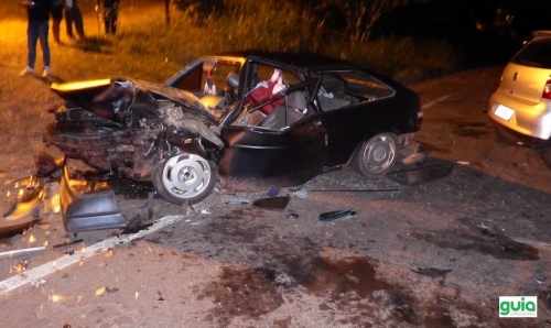 A colisão foi praticamente frontal, bastante violenta, deixando os dois veículos parcialmente destruídos.