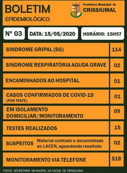 A Secretaria Municipal de Saúde de Crissiumal divulgou na tarde desta sexta-feira (15) o terceiro boletim epidemiológico com informações do coronavírus em Crissiumal.