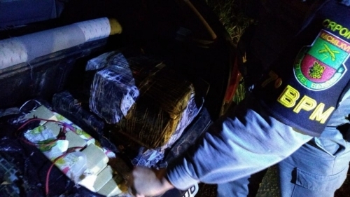 Após abordagem, os policiais localizaram no interior de um veículo com placas da cidade de Marau, 140,10 quilos de maconha.