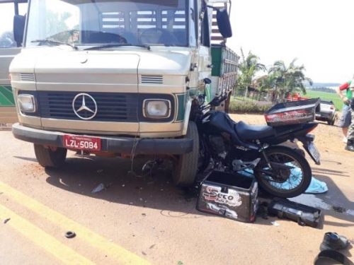 Motociclista morreu na hora ao colidir em caminhão na localidade de Cedro Marcado