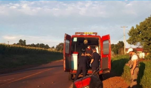 O motociclista sofreu escoriações nos braços e pernas, sendo socorrido pelo Corpo de Bombeiros com suspeita de fratura na perna direita ao Hospital de Caridade. A Brigada Militar atendeu a ocorrência e controlou o trânsito no local.