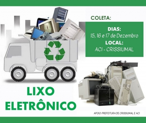 Nesta terça, quarta e quinta-feira (dia 15, 16 e 17 de dezembro), estará acontecendo mais uma ação de coleta de lixo eletrônico, em Crissiumal O ponto de coleta será na Associação Comercial e Industrial – ACI -, durante o horário de expediente.