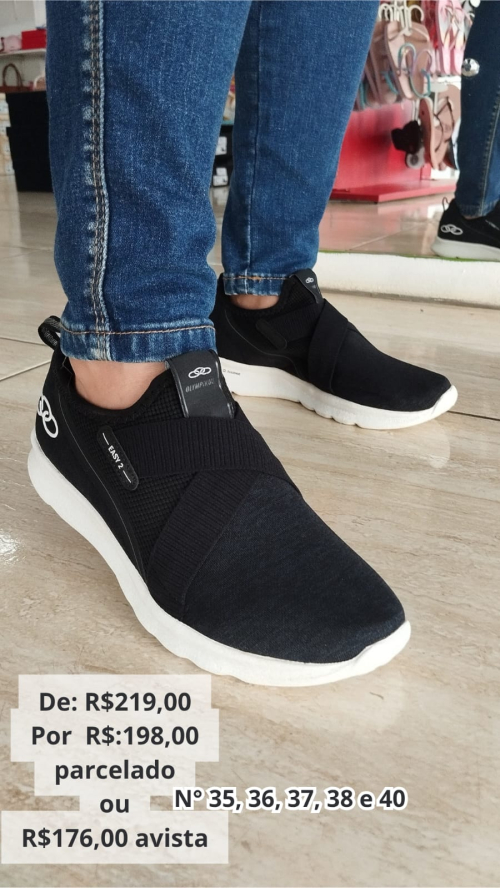 Tênis da olympikus, com 20% de desconto a vista ou 10% de desconto no parcelado.
