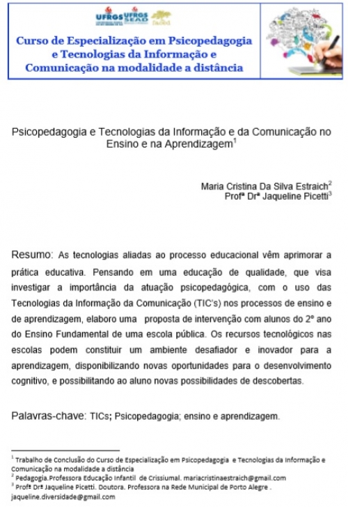 Texto de Opinião - 16/04/2018 - Psicopedagogia e Tecnologias da Informação e da Comunicação no Ensino e na Aprendizagem