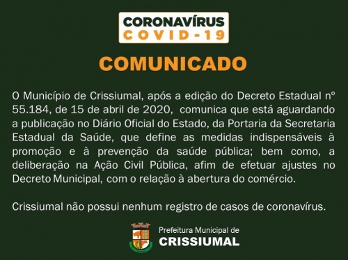 Em Crissiumal o Município tinha a intenção de emitir novo Decreto liberando as atividades fechadas ainda na noite de quarta-feira, ou no máximo na manhã dessa quinta, porém, isso acabou impossibilitado pelo Governo do Estado não ter publicado uma Portaria com as medidas indispensáveis de promoção e proteção da saúde pública. Ou seja, o Município segue dependendo de publicação do Estado para poder dar seguimento ao seu Decreto, além de uma deliberação na Ação Civíl Pública, que acabou revogando um Decreto Municipal de flexibilização já durante a semana.