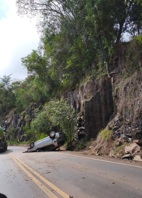 Um capotamento ocorreu por volta das 10h45 desta quarta-feira (16), na RSC-472 em Três Passos, na chamada Serrinha dos Paredões de Pedra, sentido a Tenente Portela.